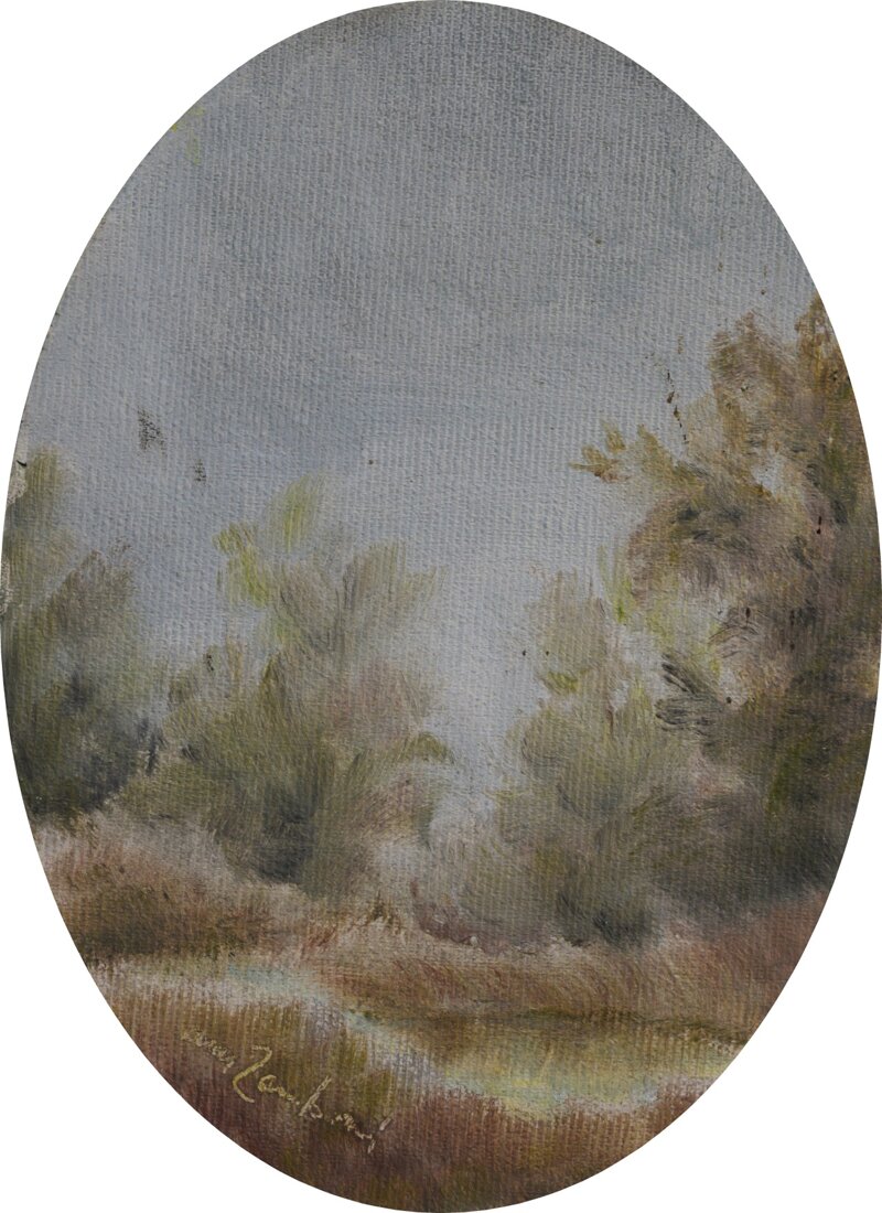 Dipinto a olio su cartone telato di Anna Maria Zamboni, 13x18 cm